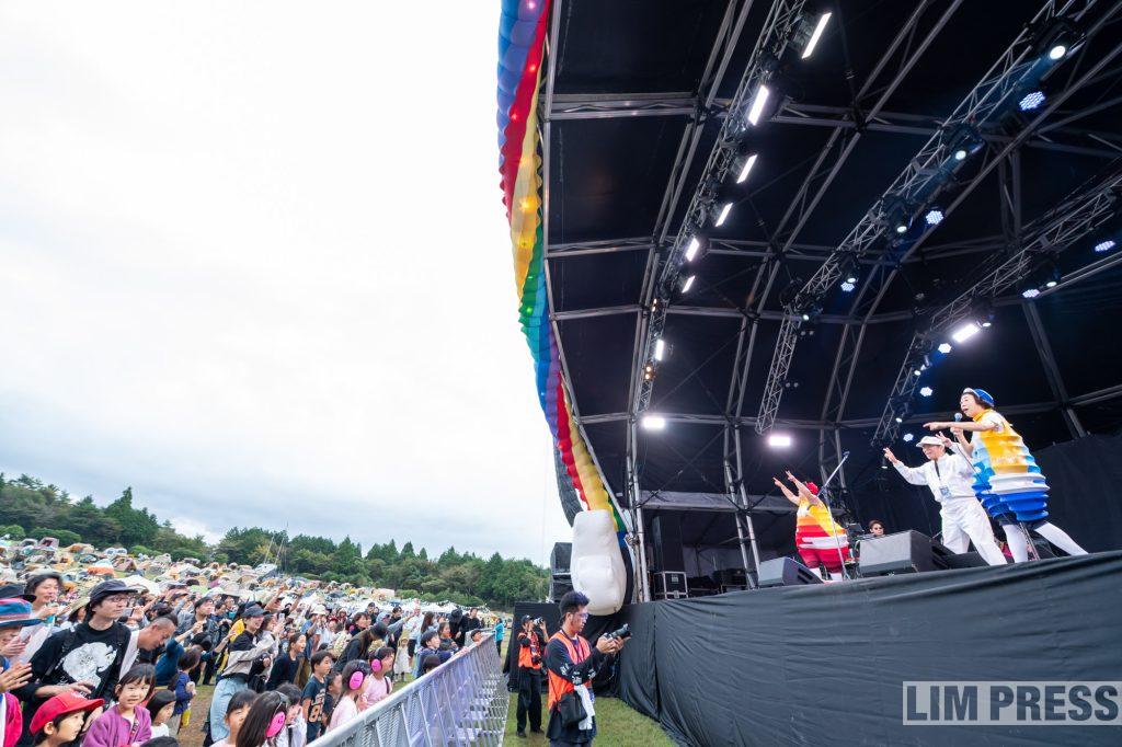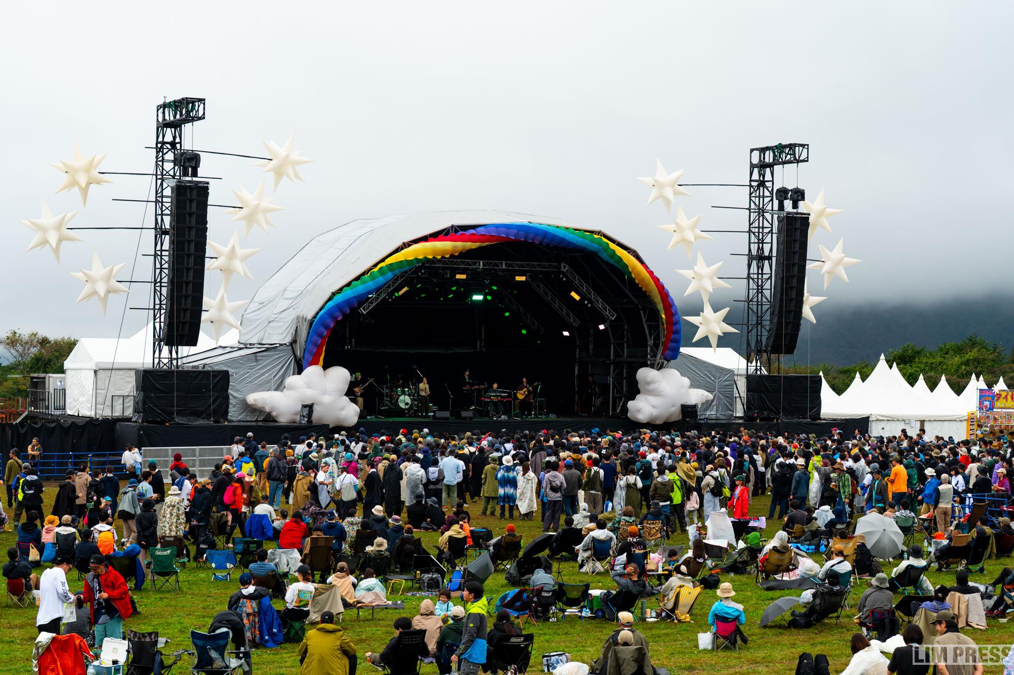バンドがステージに戻り、“スローバラード”を歌うのは田島貴男。先ほどまでムーンシャインで濃いライヴをしていた田島貴男がこちらでも濃い歌声を披露する。“ドカドカうるさいR&Rバンド”でダイアモンド✡ユカイが登場して、ジョン・レノンの“イマジン”を全員で歌う。もちろんこれも『COVERS』のヴァージョンの日本語詞だ。最後は全員で“雨あがりの夜空に”。完全に雨が上がったか微妙な天候だったけど、どちらにせよ朝霧の締めくくりにふさわしい曲で大いに盛り上がったのだった。