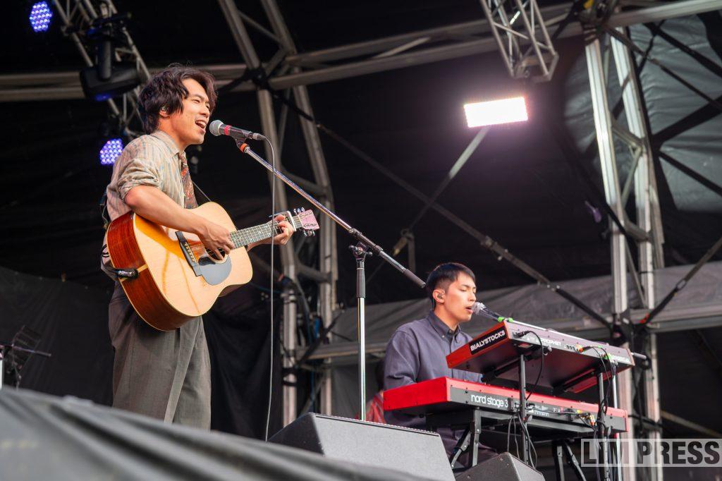 BIALYSTOCKSは素晴らしかった。“Mirror”のような70年代のAORぽい曲やCMでも使われた“差し色”などシティポップとかの文脈で語ることができる音楽性で爽やかさは午前中の朝霧JAMに合っていた。