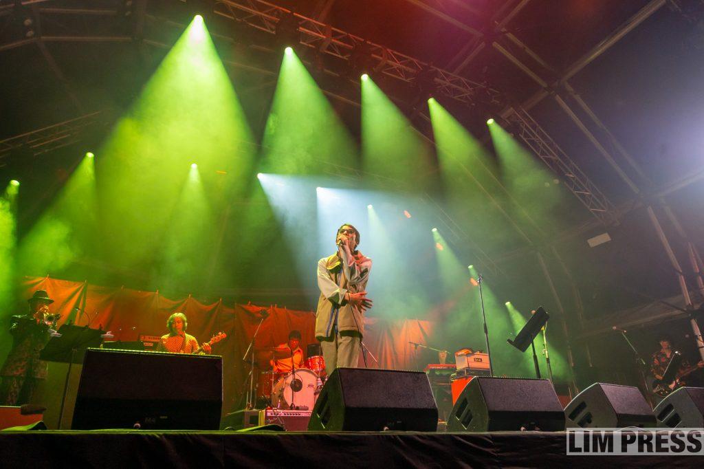 朝霧JAM最後は忌野清志郎 ROCK’N’ROLL DREAMERS。バンドのメンバーは 藤井一彦 (Gt)、井上富雄 (Ba)、宮川剛 (Dr)、伊東ミキオ (P.Key)、梅津和時 (A.Sax)、多田葉子 (T.Sax)、渡辺隆雄 (Tp)だった。まずは“よォーこそ”で始まり、“ベイビー!逃げるんだ”を藤井、ギターでGLIM SPANKYの亀本寛貴が参加する。本来ならGLIM SPANKYの松尾レミも歌う予定だったけど代役として急遽、暴動クラブの釘屋玄が歌った。最初バンドの音がでてきたときはどうなるかと思ったけど、ホーン隊のキレがよくなって、さすがベテランなので、やっていくうちにバンドの音がよくなっていくことを感じる。